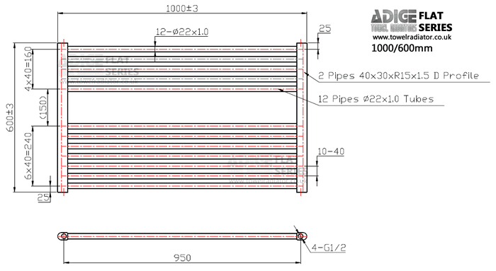 Engineered for space efficiency, this chrome plated low profile towel radiator offers a generous 1000mm wide towel rail with a streamlined 600mm height. Featuring 950mm pipe centres for easy installation, it delivers efficient warmth at 371W (1267 BTU/h @ Delta 50). The polished chrome finish adds a touch of contemporary elegance, making it ideal for modern bathrooms that value both form and function.