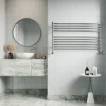 When your pipe work is coming out from the wall, there are 3 possible ways to achieve a dual fuel towel rail connection. 1st option below is the best solution in terms of ease of installation and the overall look once the connection is final. This is achieved by using a set of radiator valves specifically designed for dual fuel towel rails. These valves have T pipes built-in allowing elements to be inserted directly below, while the pipe work outlet is facing to back wall.