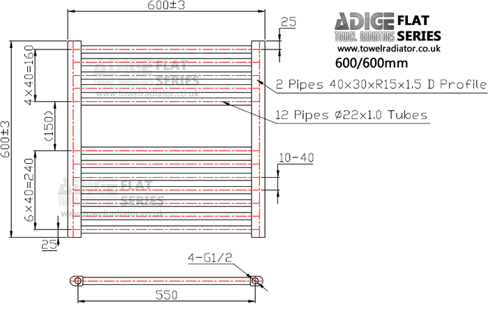 600mm(W) × 600mm(H) | This space-saving chrome-plated towel radiator delivers efficient 236W heat output (806 BTU/h @ Delta 50) with 75-95mm wall-to-pipe centres for flexible installation. Its compact square proportions provide practical drying capacity while the polished chrome finish adds a refined touch to bathrooms or cloakrooms where space is limited.