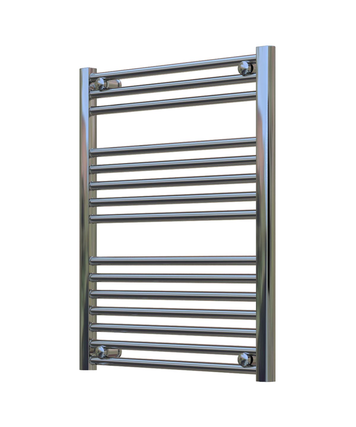 600mm(W) × 750mm(H) | This chrome-plated compact towel radiator delivers efficient 295W heat output (1008 BTU/h @ Delta 50) with 550mm pipe centres for straightforward installation. Its space-saving proportions provide practical drying capacity while the mirror-like finish adds a touch of contemporary elegance to smaller bathrooms or cloakrooms.