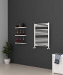 600mm(W) × 750mm(H) | This white-coated compact towel radiator combines space efficiency with performance, delivering 374W heat output (1276 BTU/h @ Delta 50). With a slim 90-110mm projection, it fits neatly against walls while providing practical drying space - ideal for smaller bathrooms or cloakrooms where every centimetre counts.