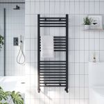 *Discontinued* 400mm wide and 1000mm high black heated towel rail with 331 Watt - 1130 BTU/h @ Delta 50