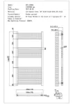 600mm wide and 1200mm high black heated towel rail with 577 Watt - 1969 BTU/h @ Delta 50