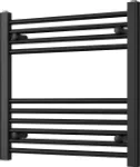 600mm wide and 600mm high black horizontal heated towel rail with 268 Watt - 914 BTU/h @ Delta 50.