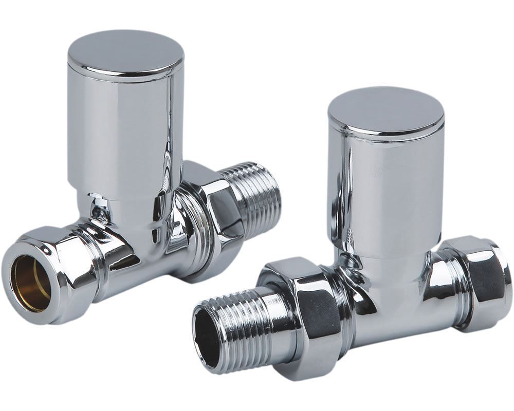 Product Code: MCSProduct Name: Chrome Straight Radiator ValvesType: StraightQty: One PairFinish: Chrome/Shiny Finish (Suitable for Chrome and Polished Finished Stainless Steel Radiators)Radiator Connection Size: ½" BSPPipe Connection Size: 15mmOverall Height: 67mmWeight: 370gr (each valve)Usage: Suitable when the pipes are coming out of the floorGuarantee: 5 Years