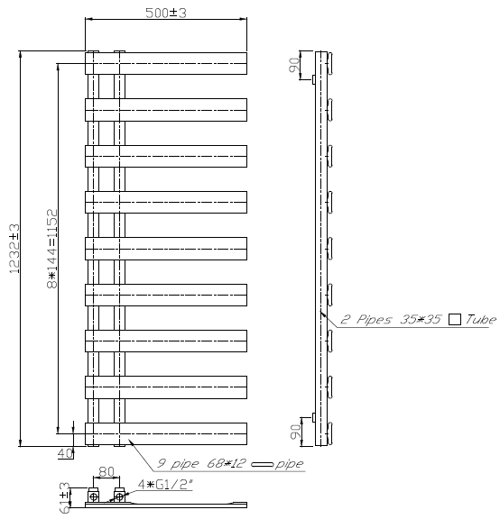 Pipe Centres: 80mm