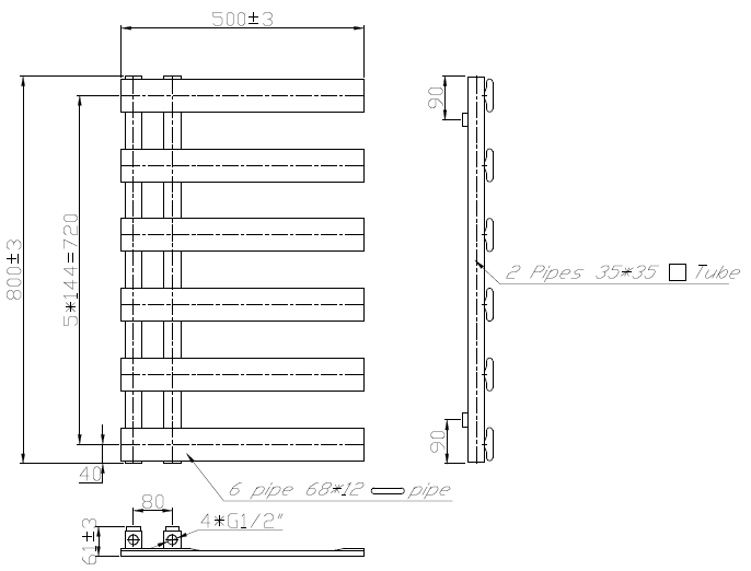 Horizontal Tubes: 6 (Rectengular 68mm x 12mm)