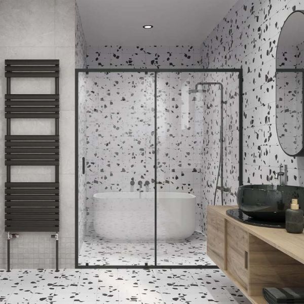 Usually on dual fuel towel rails, pipe work need to be arranged wider than the towel rail. However with these special valves, pipe work can be in line with the towel rail as if it is a straight forward central heating connection only.