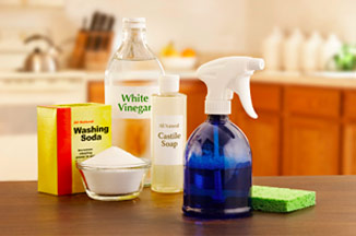 White vinegar is a fantastic all-purpose cleaning solution. You can use it anywhere, even radiators and skirting boards, but it is especially good on glass and ceramic tiles because will remove water marks and soap scum effortlessly. Dilute vinegar with water in a 50:50 solution and use a spray bottle to apply the solution to glass and tiles. Diluted vinegar is great for cleaning floors and neat vinegar can be used to clean toilet bowls and sinks.