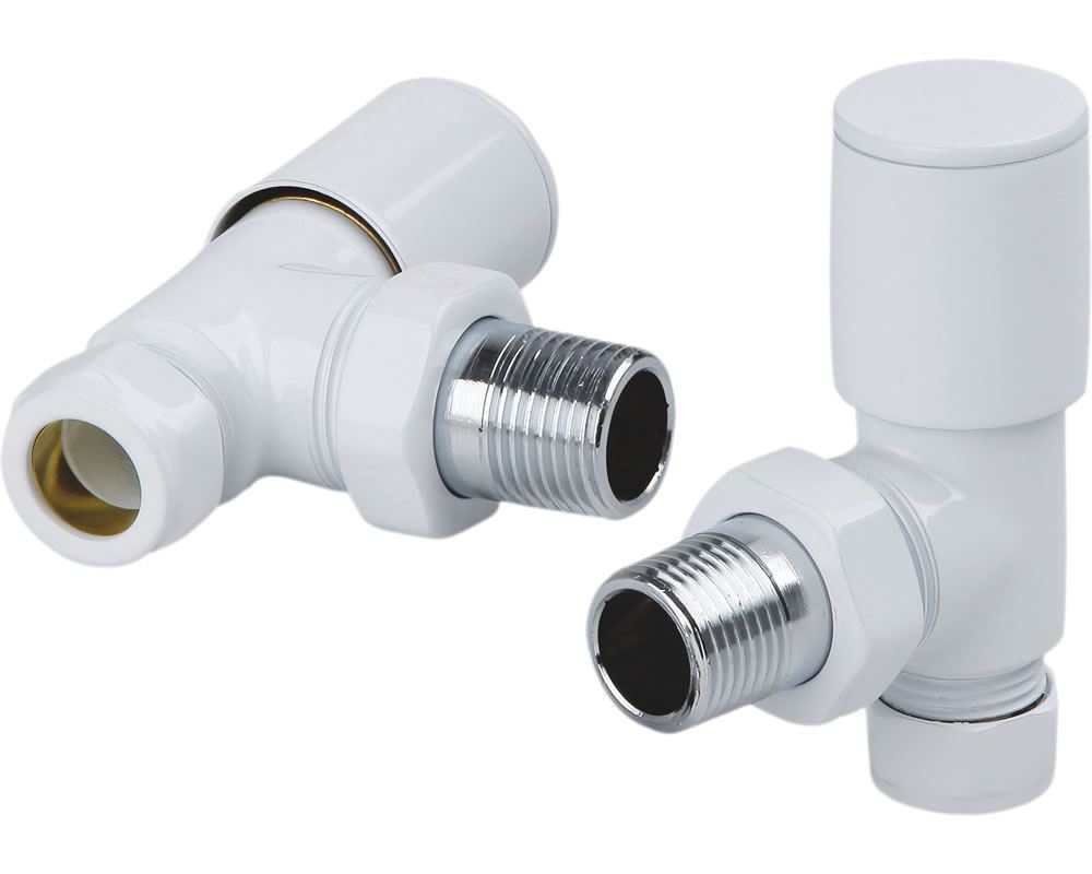 Angled radiator valves in white